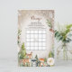 Baby Shower Bingo Winter Animals Woodland White Floral Pine Trees Silver Snowflakes