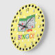 Bingo! Green and White Bingo Cards on Yellow Large Clock