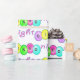 This design has a bingo balls that spell out BINGO and the word night on a white background. There is another version with bingo night that has a black background and a neon rainbow stripe.