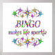 Share your love for bingo and how it brightens your life with these colourful stars, flourishes, and the words - Bingo Makes Life Sparkle.