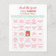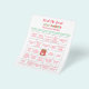 This unique, whimsical Christmas Ugly Sweater party bingo game was crafted with a touch of humour and charm. Featuring a hand-illustrated design, the reverse showcases a festive pattern adorned with Santa's reindeer, soft snowflakes, and Christmas trees, all rendered in a cosy, fleece-like texture. Add this bingo game to sprinkle some jolly into your party!