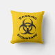 Biohazard warning icon on yellow background. Custom text. Seamless pattern background at back side.