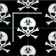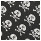 Black and white biohazard symbol skull and crossbones pattern fabric.