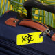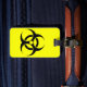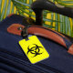 Customisable Luggage Tag with biohazard symbol graphic and place on back for personal info.