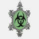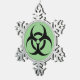 Crafted from durable pewter, this ornament is designed to last for years to come, making it a fantastic addition to any Christmas tree, garland, or festive display. The detailed snowflake shape gives it a classic winter charm, while the bold biohazard symbol adds a rebellious, tongue-in-cheek twist that stands out from the traditional reds, golds, and silvers of holiday décor. The contrast of the stark black symbol against the vibrant green background ensures that this piece catches the eye, making it a conversation starter among guests and family members. Whether displayed as part of a gothic, industrial, or alternative holiday theme or simply used to add a splash of irreverent fun to a more traditional setting, this ornament is guaranteed to make an impact.