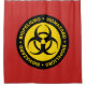 Biohazard - Biopeligro - red shower curtain with yellow and black biohazard warning sign.