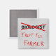 Fruit Fly Farmer - science humour magnet, red and black lettering with a grey background.