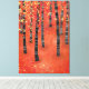 Painting of a birch or aspen forest in the fall. Red, orange and yellow semi abstract woodland.