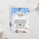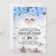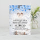Birch bark and carved heart initials rustic country wedding invitations with blue flowers frame. Unique and romantic rustic invitation for the creative bride and groom.