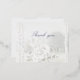 A silver foil Thank You card featuring a soft opaque birch tree forest woodland background with the words, "Thank you," in silver foil. The back of the card features the same background imagery with a written sentiment to your guests followed by your names signing off.