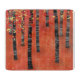 A modern contemporary landscape painting of a birch or aspen tree woodland in rich tones of red, orange and yellow.