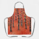 A modern landscape painting of a birch or aspen tree forest in the autumn in rich tones of red, orange and yellow.