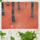 A modern landscape painting of a birch or aspen tree forest in rich tones of red, orange and yellow. Original art by Nic Squirrell.