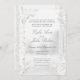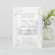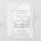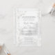 A soft white birch tree forest wedding invitation featuring a foggy forest woodland background with pure white birch trees in the foreground adorned with white peonies and silver dollar eucalyptus greenery. Bride and Groom's parents invite the guests with your names in a classic modernised wedding script. The back of the invite looks more like the cover and features the Bride and Groom's surnames.
