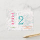 Birch Tree Aqua Sky with Colourful Playbill Typography Fonts Wedding Table Number