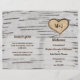 Birch tree heart initials rustic wedding program with a carved heart in the bark with your initials. 80 lb weight paper. This is perfect for your outdoor rustic country barn wedding. Colours of brown, dark brown, off white, tan, and black. You can customise the words to whatever you need. You can also replace or customise the images. Please see the matching collection on this page for other matching items for your special event.