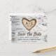 Birch Tree Rustic Country Wedding Save the Date Postcards - features a white birch bark background with shades of brown, grey, black and other neutral colours. The design also features a realistic carved heart on the birch bark that you can "carve" your initials and event date into and modern typography fonts, for added flair, are used for the rest of the invite wording. This product will showcase a timeless element to your event for years to come and matches any type of wedding theme, colour or season -- from vintage weddings, fall or winter, or the ever popular rustic themes. View the matching collection on this page to find coordinating products that match your event needs.