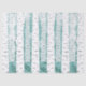 A striped design of white birch trees mingled with winter snowflakes. In colours of teal and white. A  modern snowy winter scene.