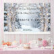 Beautiful Winter Wedding "Welcome to our Wedding Reception" banner with pine trees, white birch trees wrapped with pretty Christmas lights. snow and sparkling stars. Personalise with your message and names. Great for Christmas parties or Winter Wonderland Sweet Sixteen.