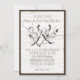 Buck and doe woodland country deer theme wedding invitation with rustic birch tree bark look background and rich brown text.