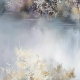 Dreamy island woodland stands of beautiful white birch trees in the morning mist watercolor by ©WhimsicalArtwork™