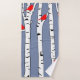This towel set has a white washcloth, a red hand towel, and a bath towel with a winter design of birch trees with red birds sitting amongst them. It also has a slot for an added filter if desired.