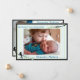 This lovely, two sided birth announcement set against a soft blue and green striped background makes a simple yet beautiful statement. Tree branches with blossoms and a bird and nest graphic add a touch of spring and softness. Four photo templates allow for plenty of show off photos in an attractive arrangement and can also serve as a keepsake that can be framed. Original art by Night Owl's Menagerie, 2013.