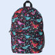 Bird and flower watercolor pattern in teal green, red and pink on a dark background. Original art by Nic Squirrell.