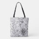 Bird and flowers doodle pattern tote bag