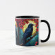 Bird Art Stained Glass Crows, Ravens perched in a cherry tree mug. Colourful coffee cup smile. Fantasy Stained Glass Backgroud design of Garden Birds theme that you can change styles to match your taste. Magical garden flowers of red hue colours. The early bird gets the worm. Pretty Red Garden Flowers Bird fantasy springtime coffee mug. You can customise size and style of your coffee cups or mugs black bird style and theme. Bird image is sizeable too. Perfect beautiful wild birds of a feather lovers gift idea. The smartest birds in the world are Crows and Ravens.