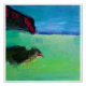 Abstract landscape painting of a bird in flight at a beach. Painted in blues, greens and reds. This is about that moment in life when you are so at peace, relaxing, smelling coconut oil, margarita salt on your lips, the sun warming your skin, sand squishy beneath your toes, and with your eyes are barely open, something jolts you and reminds you are not the only one in the world. Original painted in acrylic on 12x12 canvas in 2014 by Stacy.