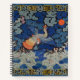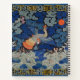 This crested Chinese bird image is based on an antique embroidered silk mandarin square, with rich blue, red and orange. It is a reproduction image of an antique bird embroidery piece, not an actual embroidery, possibly a golden pheasant or a peacock.