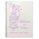Wedding guest book / guest sign in book or guest signature book featuring two love birds line art graphic drawing of open bird cage hanging from a blossoming spring tree with hearts. Customise with your names. Ideal to leave in a reception area for guests to share words of advice, a great keepsake memento from your marriage day. Unique drawing and design by Sarah Trett.