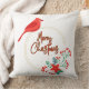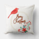 Christmas throw pillow with a bird design.