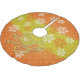 Vintage style Bird, Dots, and Snowflakes beautiful holiday tree skirt features an orange and mustard green polka dotted background with lots orange and white snowflakes and a pretty olive green bird on a branch with red berries. This beautiful Vintage Bird, Dots, and Snowflakes design holiday tree skirt makes a great gift or get one for yourself to enjoy for years to come!