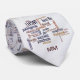 This curious necktie presents, in a colourful visual form as a word cloud, the keywords that summarise the issues surrounding the threat to our health from the avian influenza virus, an infection in birds that is commonly referred to as Bird Flu. The word cloud lies on a background consisting of a bird's white feather tiled along the length of the necktie.