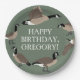 Throw a truly wild party with these personalised party supplies. These paper plates are ready to be customised with your own message in white lettering in the centre. The sage green coloured plates feature illustrations of Canada geese in brown, black and white making them perfect for birthday parties and other events honouring bird lovers.