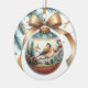 This white ceramic round ornament features a digital painted holiday design. The ornament includes a bow, pinecones, greenery, red berries, and a red-breasted robin. The back of the ornament has a Merry Christmas greeting and a timestamp. This ornament will beautifully complement a nature-inspired Christmas tree, especially one featuring songbirds. It's a thoughtful gift for any bird lover, with its pretty watercolor songbird design. AI artwork designed by susang6