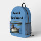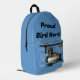 This backpack features a photo of a black and white duck with something to say. The main body of this backpack displays a bright blue colour that can easily be customised. "Bird Nerd" can also be personalised if you desire.