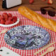 BIRD NEST AMONG SPRING FLOWERS ,White,Blue Paper Plate
