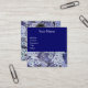 BIRD NEST AND SPRING FLOWERS Monogram Blue White Square Business Card