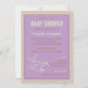 Personalise this cute purple and cream baby shower invitation. Drawing of a mother bird standing on the edge of her nest on the front. Cute little bird on the other side, too! Don't forget - you can choose the paper you like best!