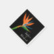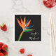 Your names and an exotic tropical bird of paradise watercolor flower on a black background (or any colour) are featured on these cocktail napkins, a wedding event decor. MATCHING items in our collection.