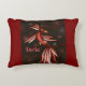 Bird of Paradise throw pillow, colorful, pretty design. Red, black, and white colors with personalized name on front and Bird of Paradise pattern on back.