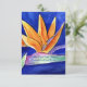 The vibrant fan like crown of orange petals of a bird of paradise flower are in contrast to the deep plush royal blue background. The watercolor art flower painting features a profile view of the bird of paradise flower. This flower is known as the Crane Flower in South Africa. Personalise the Bird of Paradise invitation cards or invites with your own text and images using the "Customise It" button to create a special Bird of Paradise flower gift or cards!