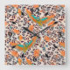 Bird of Paradise, leopard skin, Coral and turquois Square Wall Clock