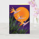 Bird of paradise note Card. Original image and illustration composition of beautiful tropical bird of paradise flowers on the background of a full orange moon. Blank card for any occasion.