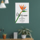 A tropical bird of paradise watercolor flower with Welcome and your wedding details in chic lettering accent this poster, change to any size. Order as INSTANT DOWNLOAD or PRINTED plus MATCHING items and more colours in our collection.