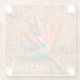 Personalised glass coasters feature your last name and an exotic tropical bird of paradise watercolor flower on a woven wicker background. MATCHING items in our store.