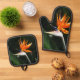 Bird of Paradise Orange Tropical Flower Oven Mitt & Pot Holder Set
